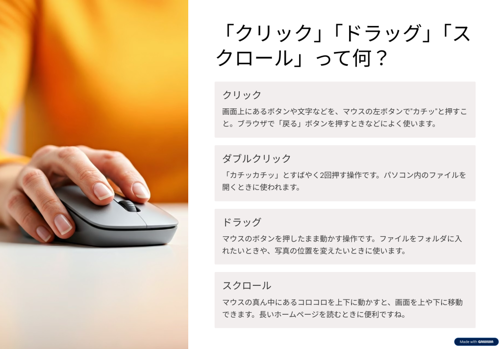 - まず覚えたい!「クリック」「ドラッグ」「スクロール」って何?