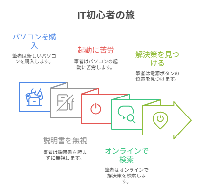 - 筆者の体験談:私も「電源ボタンってどれ?」から始まりました