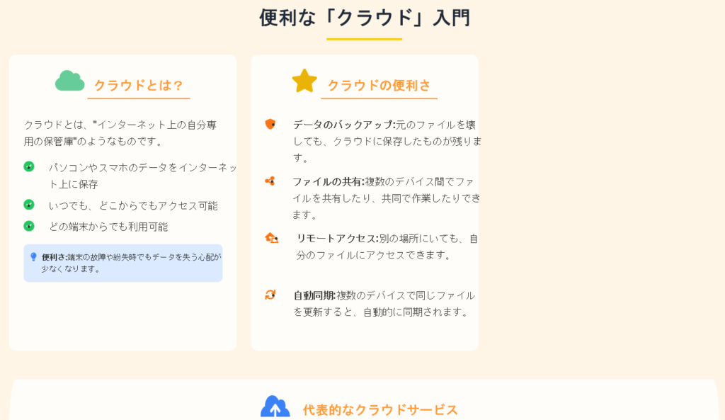 クラウドを覚えると、「スマホが壊れても写真が残る」という安心感が得られます。