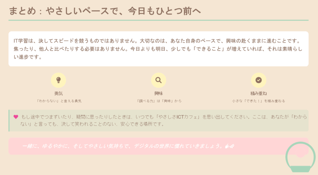 6. まとめ:やさしいペースで、今日もひとつ前へ
