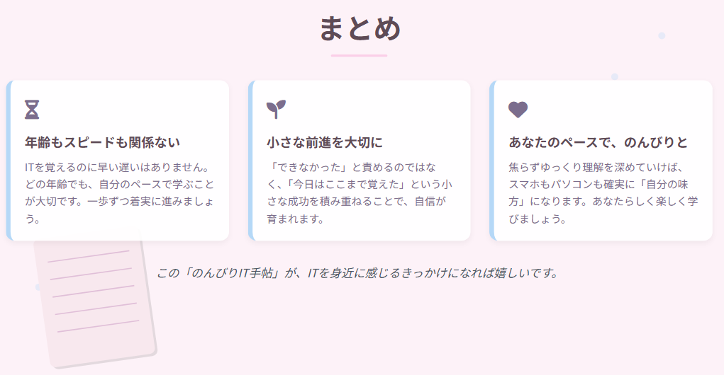 - まとめ:焦らず進めば、ITは必ず味方になる