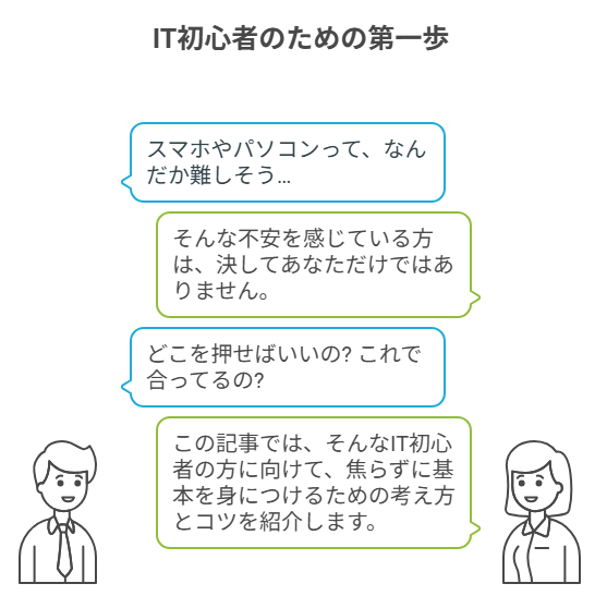 この記事では、そんなIT初心者の方に向けて、焦らずに基本を身につけるための考え方とコツを紹介します。