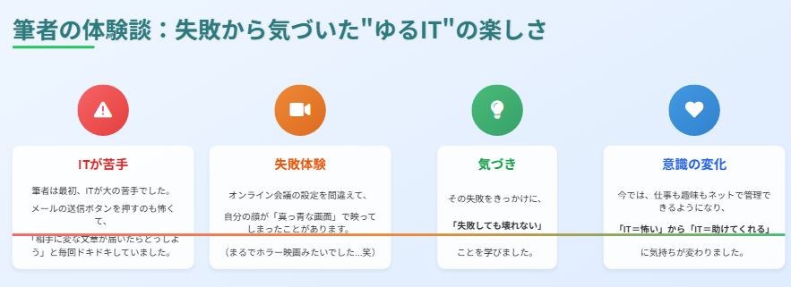 - 筆者の体験談:失敗から気づいた“ゆるIT”の楽しさ