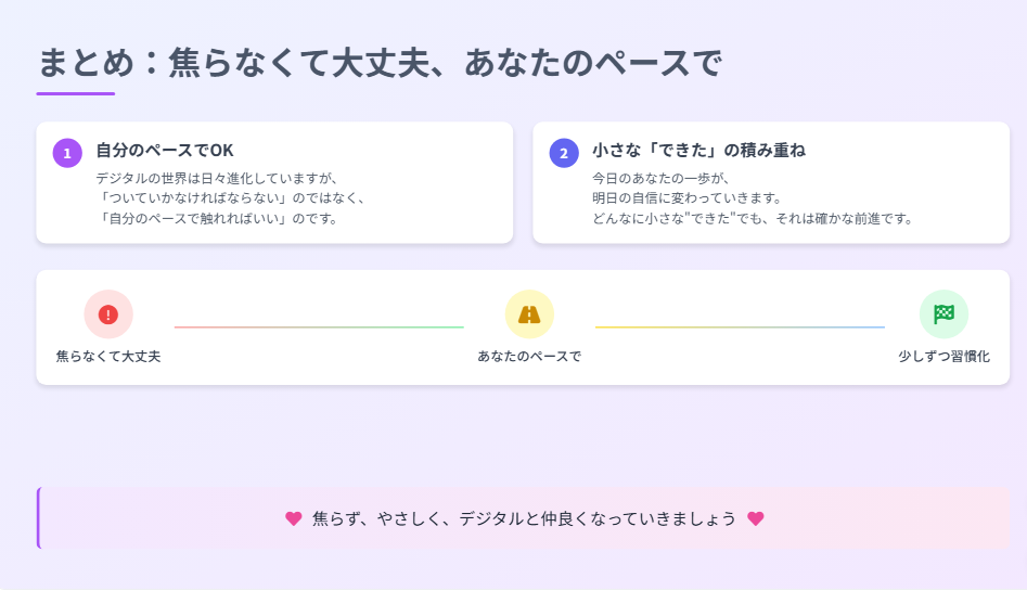 - まとめ:焦らなくて大丈夫、あなたのペースで