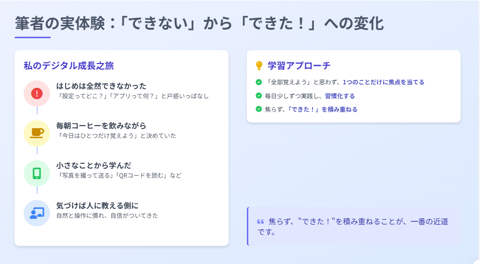 - 筆者の実体験:「できない」から「できた!」への変化