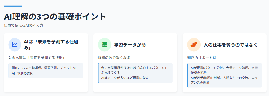 2. AI初心者でも理解できる3つの基礎ポイント(本論)