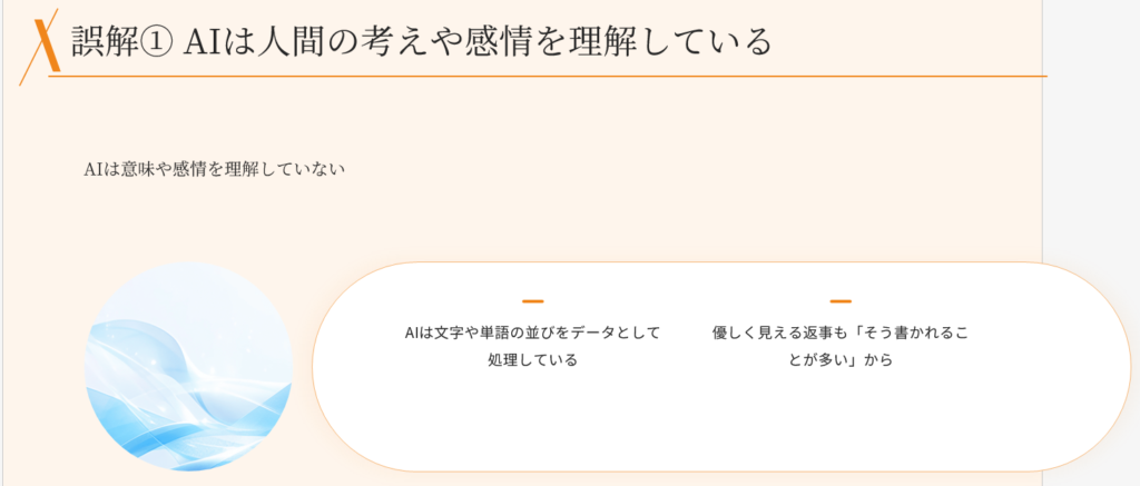 誤解① AIは人間の考えや感情を理解している