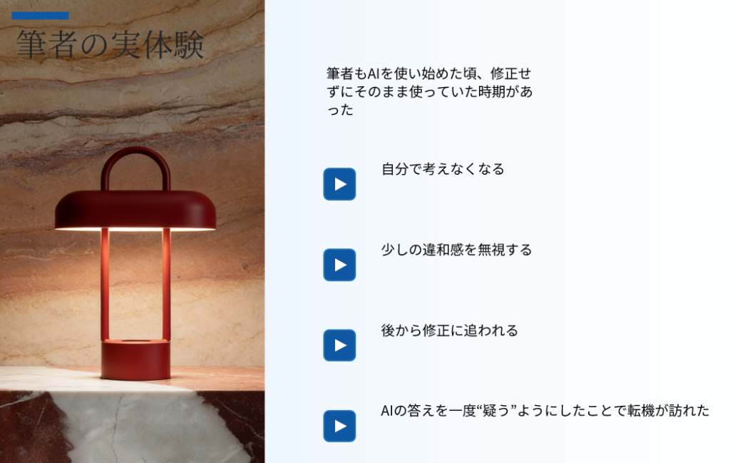 - 筆者の実体験:AIを信じすぎて疲れた話