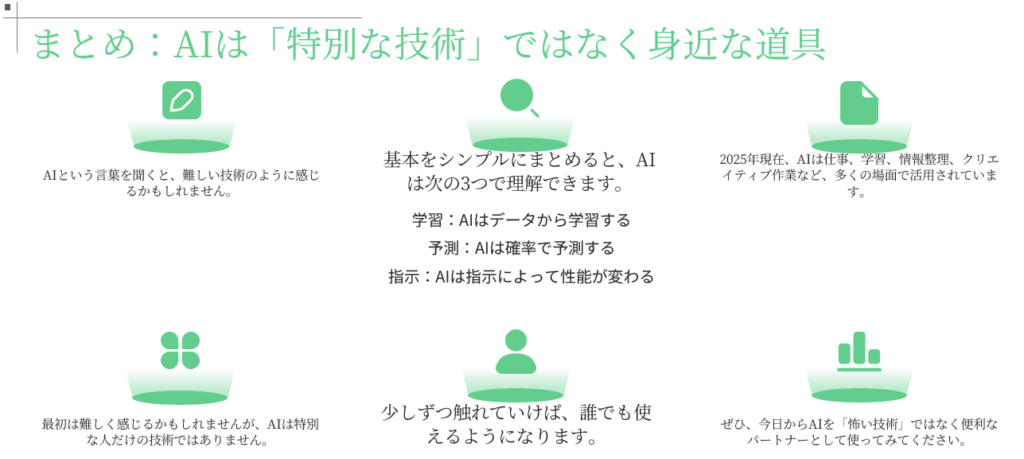 - まとめ:AIは「特別な技術」ではなく身近な道具