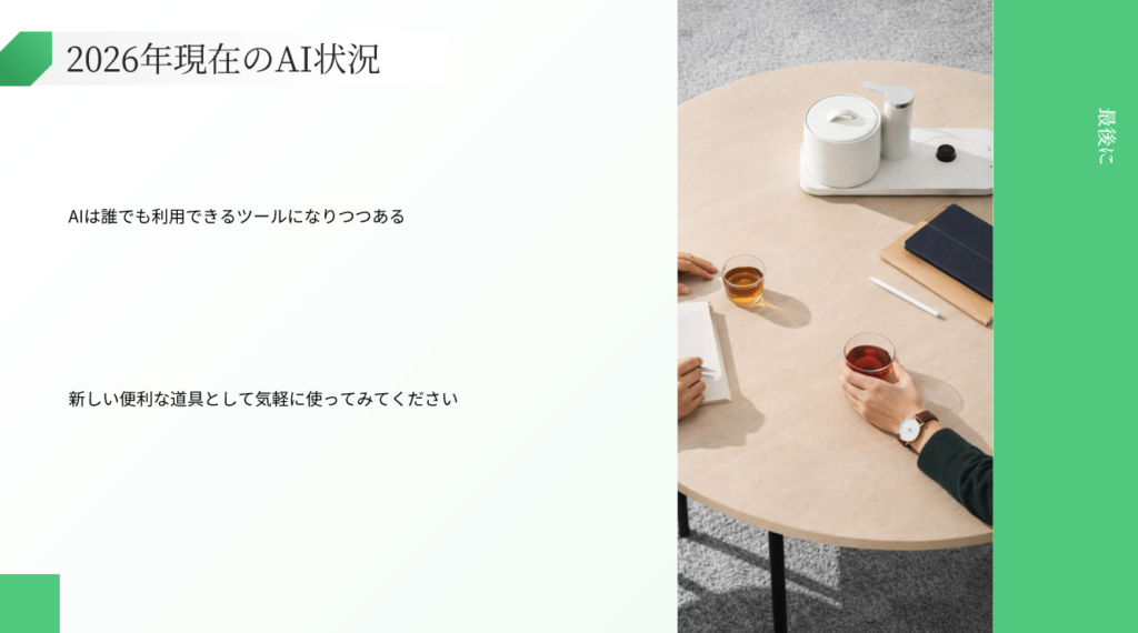 - まとめ:AIは特別な技術ではなく、身近な道具