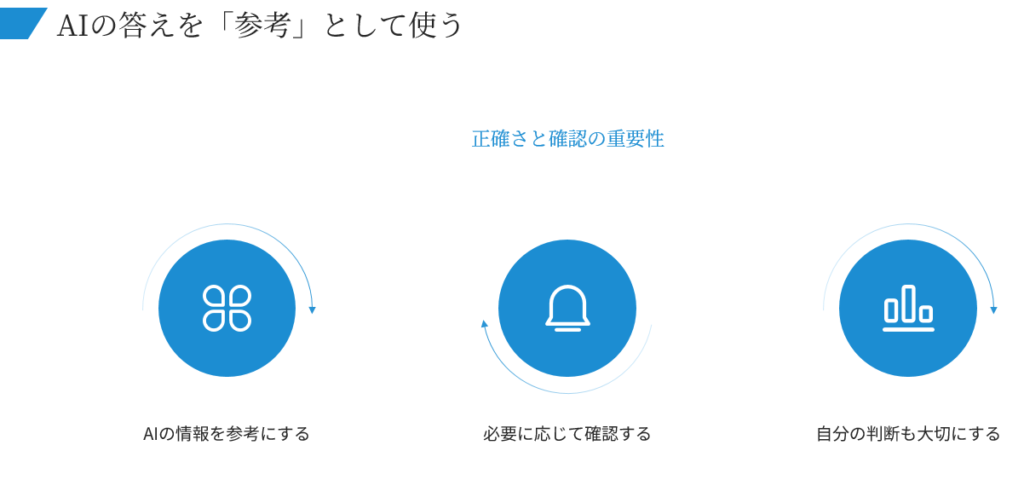 AIを完全に頼るのではなく、サポートツールとして使うことで安心して活用できます。