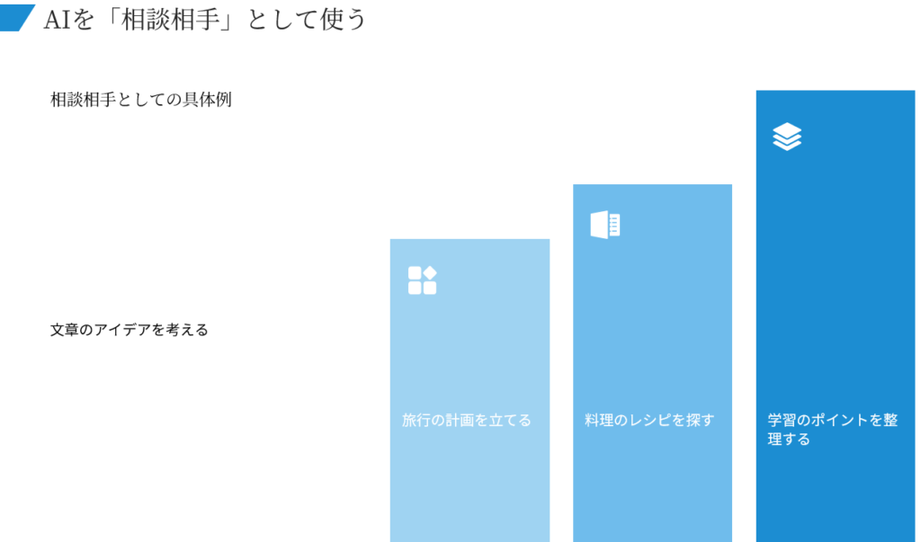 AIを使うときは、難しい作業をさせようとするより、相談相手として使うのがおすすめです。
