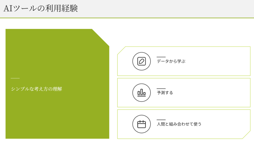• AIは人と協力して使うツール