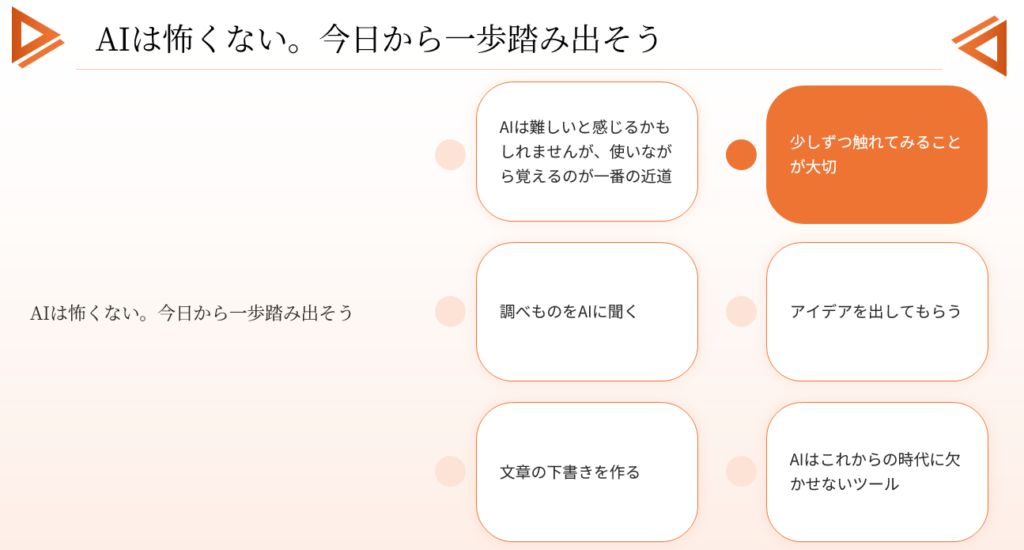 - AIは怖くない。今日から一歩踏み出そう