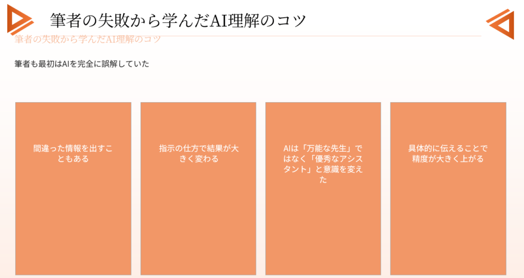 - 筆者の失敗から学んだAI理解のコツ