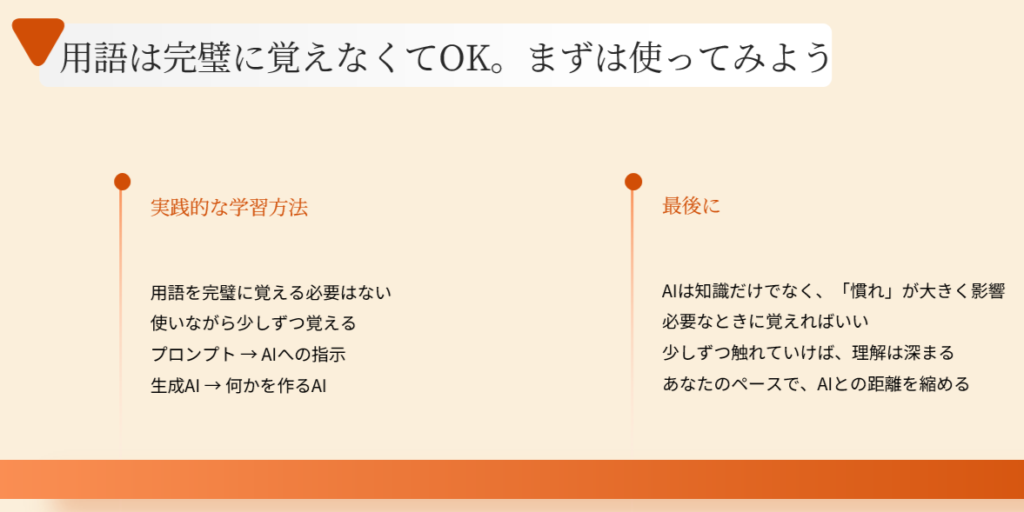 AI用語はたしかに多いですが、最初からすべて覚える必要はありません。