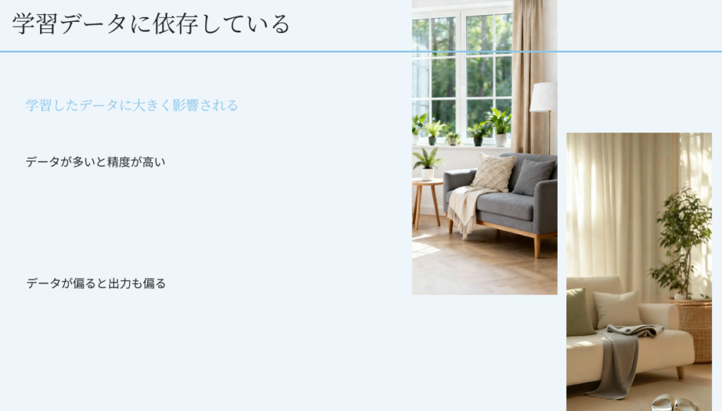 AIの能力は、学習したデータに大きく影響されます。