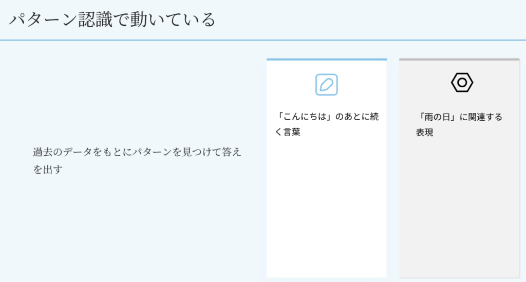 AIは過去のデータをもとに、パターンを見つけて答えを出します。
