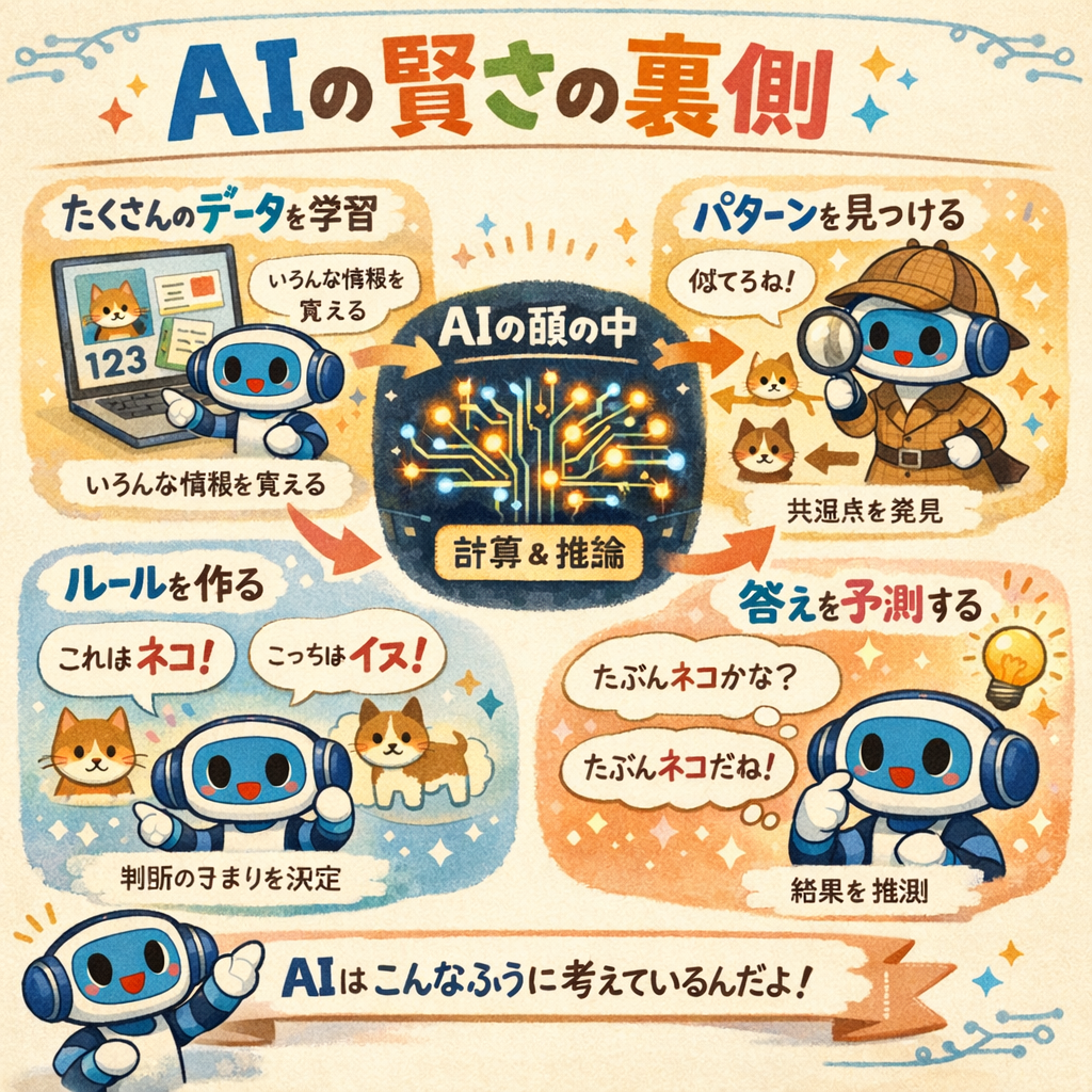AIは一見するととても賢く見えますが、その裏側にはシンプルな仕組みがあります。