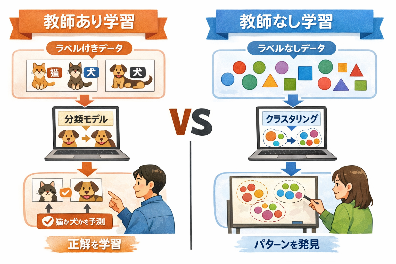 「教師あり?教師なし?名前は聞くけど違いが分からない…」