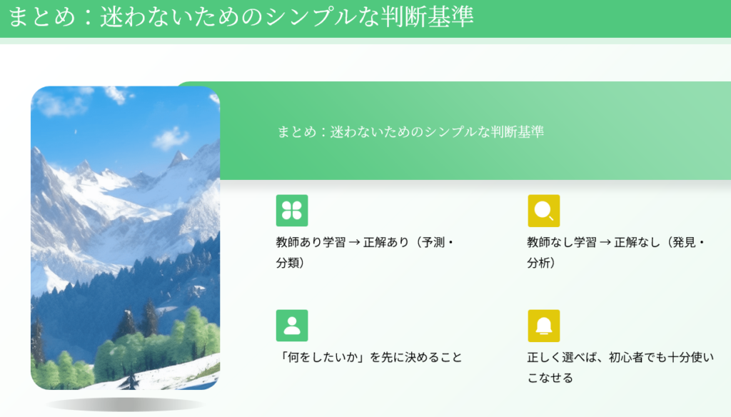 👉 現代のAIは、両方を組み合わせて使うことも多いです。